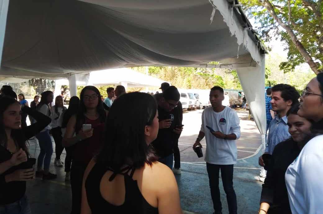 A las 12:30 del mediodía los estudiantes ya se congregaban en los alrededores de la cancha, ansiosos por entrar. Algunos exhibían sus franelas de promoción, otros se arreglaban para la celebración, muchos otros debatían sobre si había sido buena idea no llevar almuerzo ese día.