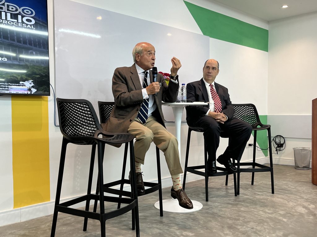 El primer panel, titulado “El lenguaje en el proceso”, contó con la exposición de Ramón Escovar León y los comentarios de Luis Rodolfo Herrera, quienes reflexionaron sobre el papel del lenguaje jurídico como herramienta de interpretación, persuasión y legitimación en el ámbito procesal. El segundo panel se centró en los “Medios electrónicos en el proceso civil”, con las intervenciones de Álvaro Badell Madrid y Gabriel De Jesús Goncalves, acompañados por Irving Maurell como comentarista, para explorar los desafíos y oportunidades que plantea la digitalización de la justicia civil.